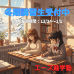 冬期講習の受け付けが始まりました。冬期講習では、中3、高3以外は、どの学年も3学期の先取りをします。学年末テストで高得点を取ったり、次の学年でスムーズに勉強を進めるには、3学期の学習がどれだけしっかり身についているかが重要です。しかし、冬休みはどうしても気持ちが勉強に向きにくくなります。年末年始の騒がしい雰囲気が、勉強の邪魔をしてしまうのです。だからこそ、塾で勉強するのは非常に効果的です。冬休み、塾で一緒に勉強して、成績大幅アップを目指しましょう!